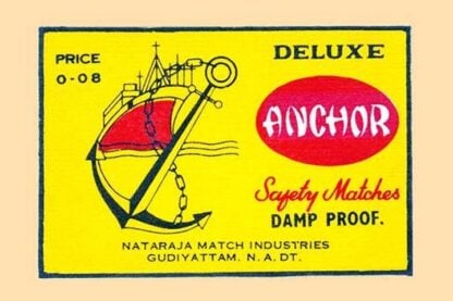 Thousands of companies manufactured matches worldwide and used a variety of fancy labels to make their brand stand out. The match boxes had unusual topics but some were much prettier than others. A large ship and anchor dominate the face of this label.Unknown Date/India
