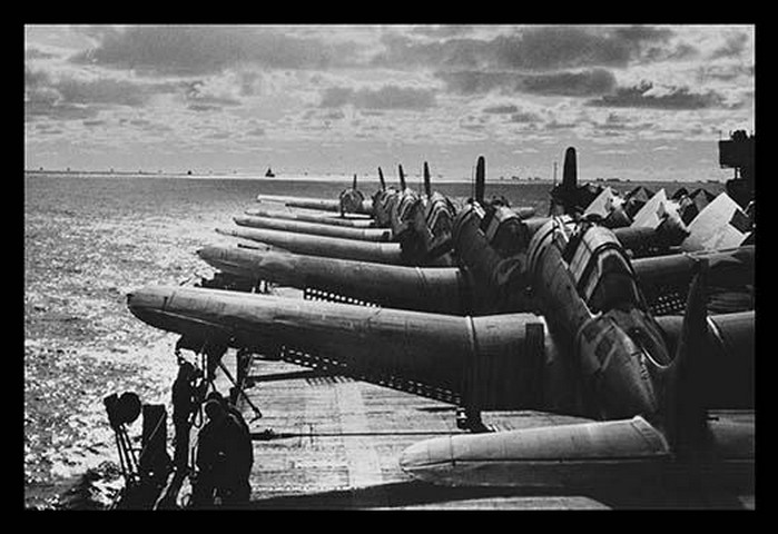 U.S. Navy Airplanes Packed on Deck by U.S. Navy
