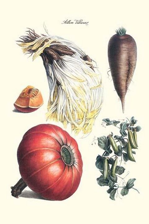 Vegetables; peas, melon, brussel sprouts, gourb, by Philippe-Victoire Lev que de Vilmorin – Posters and prints on paper or canvas by standard digital or deluxe giclee printing.