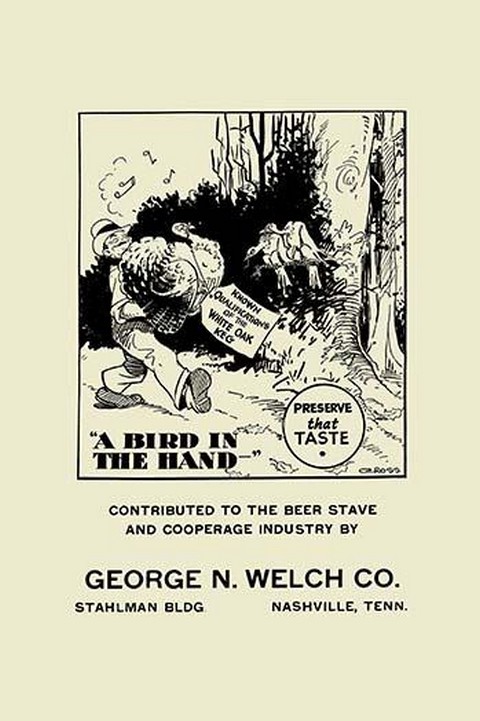 The George N. Welch Co. of Nashville, Tennessee subtly reminds brewers of the superior quality of beer kegs made with white oak.1933/USA