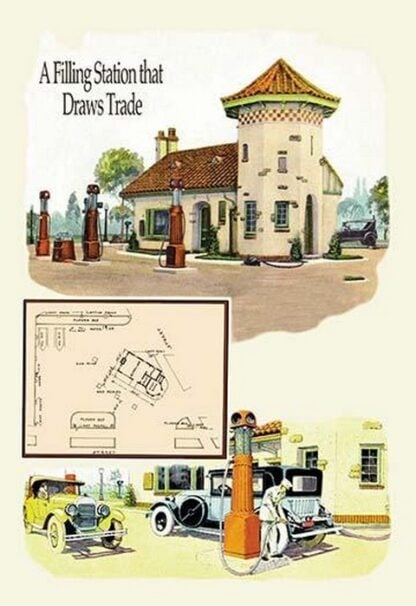 A Filling Station by Geo E. Miller – Posters and prints on paper or canvas by standard digital or deluxe giclee printing.