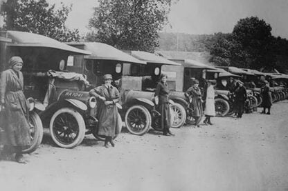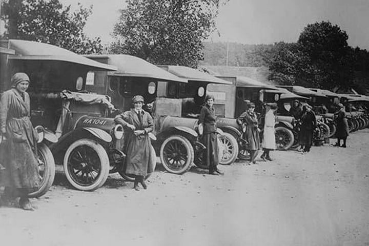 A Detachment of British Women Ambulance Drivers line up at the ready to perform their duty after they ship out to the Battle Front in France during WWI1917/UK