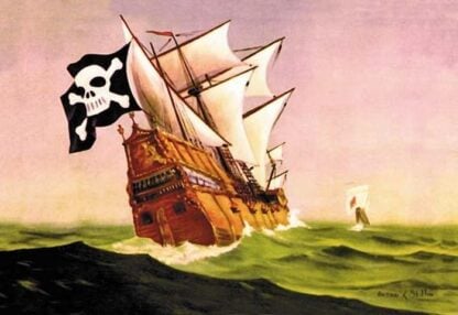 A Pirate Ship With Sails All Set by Anton K. Skillin – Posters and prints on paper or canvas by standard digital or deluxe giclee printing.