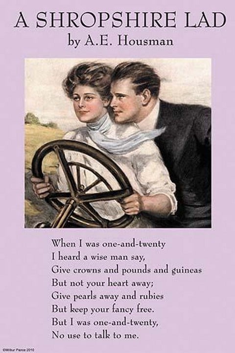 A Shropshire Lad is a cycle of sixty-three poems by the English poet Alfred Edward Housman. Some of the better-known poems in the book are ‘To an Athlete Dying Young’, ‘Loveliest of Trees, the Cherry Now’ and ‘When I Was One-and-Twenty’. The collection was published in 1896. Housman originally titled the book The Poems of Terence Hearsay.1896/England