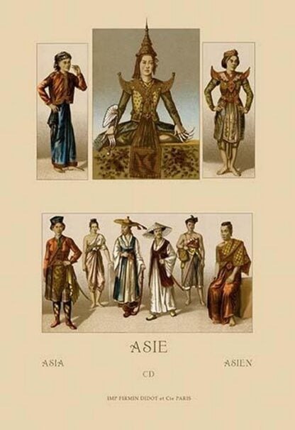 A Variety of Asian Costumes by Auguste Racinet – Posters and prints on paper or canvas by standard digital or deluxe giclee printing.