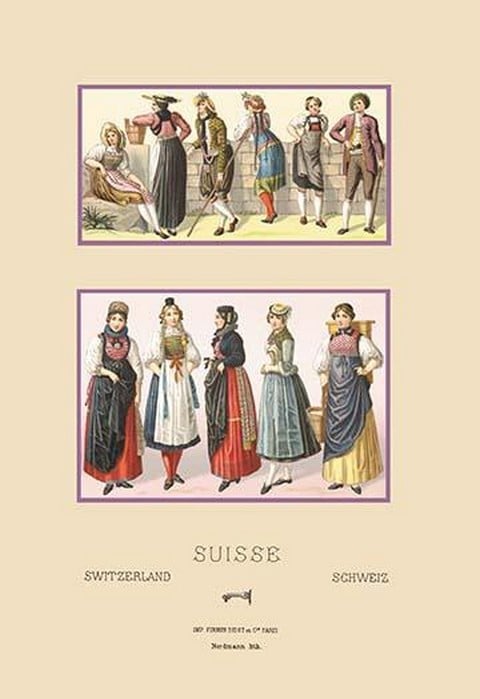 A Variety of Swiss Fashions by Auguste Racinet – Posters and prints on paper or canvas by standard digital or deluxe giclee printing.