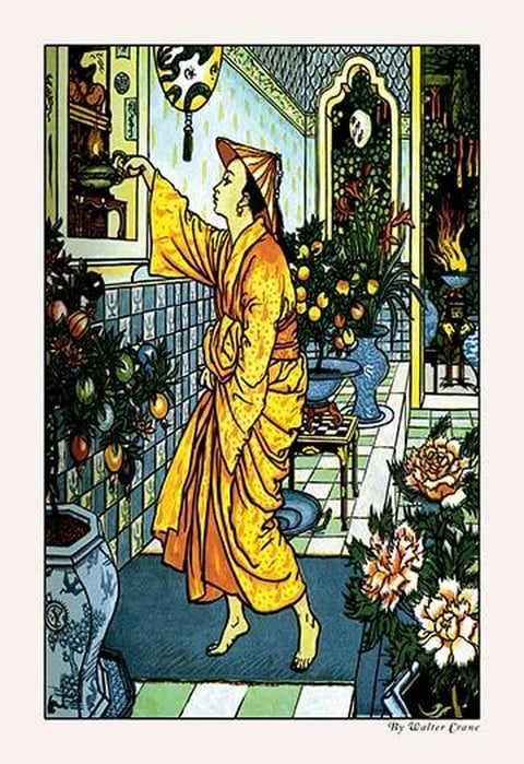 Walter Crane (1845-1915) was an English artist and book illustrator. He was a major contributor to the child’s nursery motif that the genre of English children’s illustrated literature of the latter 19th century. He feature child-in-the-garden motifs that would characterize many nursery rhymes and children’s stories for decades to come. Born in Liverpool, he was part of the Arts and Crafts movement. He produced paintings, illustrations, children’s books, ceramic tiles and other decorative arts1878/Britain
