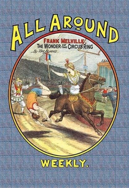 Frank Tousey (1853-1902) was among the top five publishers of dime novels in the late 19th-century and early 20th-century. Based in New York, his sensationalism drew a large audience of youth, hungry for scenes of daring and tormented heroes and damsels in distress. Of particular notice in his approach to the ‘blood and thunder’ genre were the vivid cover illustrations of his dime novels, which were consistently larger and more thrilling than previous publications. Although focused on fictional weeklies, Tousey managed a variety of materials over time, including some handbooks, gossip sheets, and even a newspaper on current events in the Spanish-American War. “All Around Weekly” was a nickel weekly publication reprinting material from “Boys Star Library” and ran from from October 29, 1909, to March 10, 1911. Each issue featured 32 pages with colored pictorial covers and contained a variety of long, interesting stories. These stories were written by different authors and illustrated by expert artists. The publisher aimed to provide engaging content that couldn’t be found elsewhere. The blurb promised “a new story every week” and “fine illustrations.” Although the series ended after 72 issues, it left a mark as a periodical that catered to diverse tastes and entertained readers with thrilling adventures, mysteries, and more.