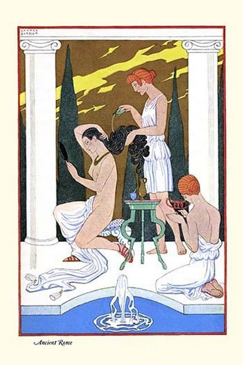 After the bath, a Roman slave pours perfume over a nude girl1908/Paris, France