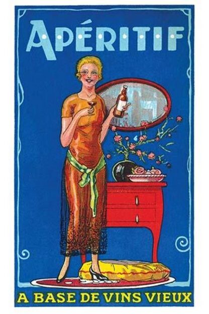 “Aperitif à base de vins vieux” (Apéritif Made from Old Wines), a vintage French advertisement poster.