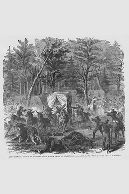 Frank Leslie was a prominent 19th-century American illustrator, publisher, and editor. He started as an illustrator for popular periodicals and established his own publishing company, “Frank Leslie’s Illustrated Newspaper,” which became one of the most successful and influential newspapers of its time. Leslie was also a pioneer in the use of photographs in journalism and established a photographic studio to create original images for his newspaper. He wrote several books and plays and was an important figure in the development of American media, shaping the way news was reported and disseminated. He died in 1880, leaving a lasting legacy.Attack on Union General Lee’s wagon train at MansfieldApril 8, 1864/USA