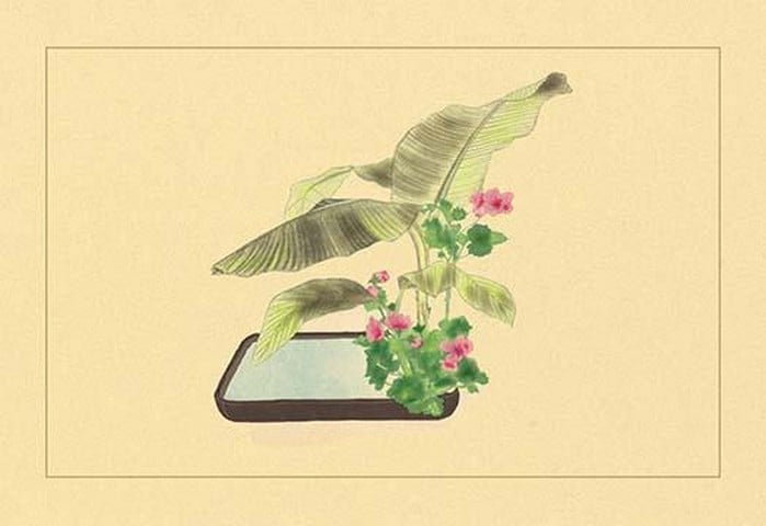 Ikebana is the Japanese art of flower arrangement. This art form is like a martial art as it uses the mind as well as form, shape, color of the flowers.1934/Japan