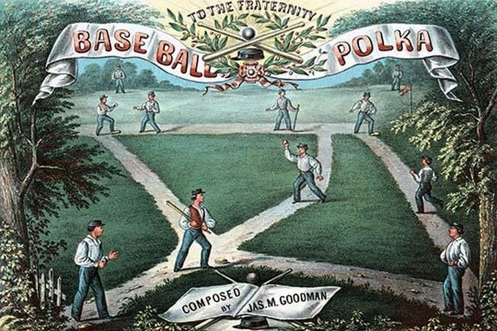 Birdseye view of a baseball game on a Music Sheet1867/USA