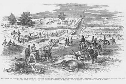 Frank Leslie was a prominent 19th-century American illustrator, publisher, and editor. He started as an illustrator for popular periodicals and established his own publishing company, “Frank Leslie’s Illustrated Newspaper,” which became one of the most successful and influential newspapers of its time. Leslie was also a pioneer in the use of photographs in journalism and established a photographic studio to create original images for his newspaper. He wrote several books and plays and was an important figure in the development of American media, shaping the way news was reported and disseminated. He died in 1880, leaving a lasting legacy.Battle of AntietamSeptember 19, 1863/USA