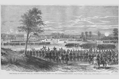 Frank Leslie was a prominent 19th-century American illustrator, publisher, and editor. He started as an illustrator for popular periodicals and established his own publishing company, “Frank Leslie’s Illustrated Newspaper,” which became one of the most successful and influential newspapers of its time. Leslie was also a pioneer in the use of photographs in journalism and established a photographic studio to create original images for his newspaper. He wrote several books and plays and was an important figure in the development of American media, shaping the way news was reported and disseminated. He died in 1880, leaving a lasting legacy.Battle of Pleasant HillApril 9, 1864/USA