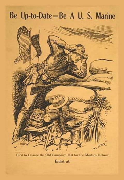 First to change the old campaign hat for the modern helmet.’ A practice which saved many lives.1917/USA