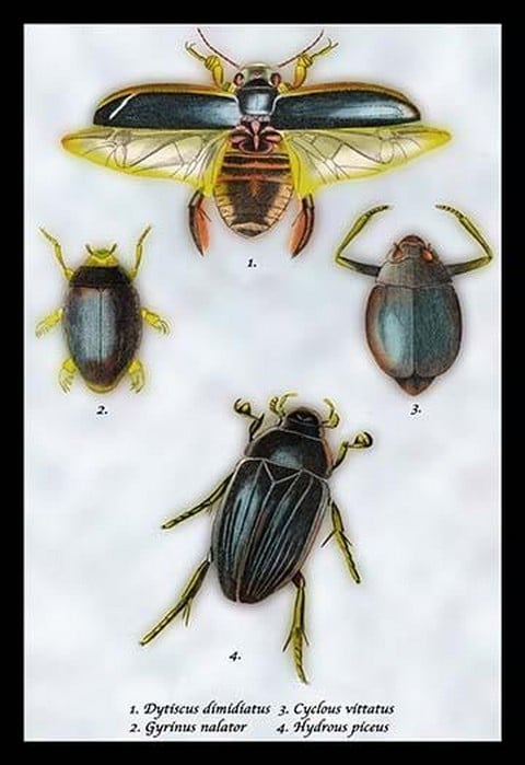 Beetles: Dytiscus Dimidiatus, Gyrinus Nalator et al. by Sir William Jardine – Posters and prints on paper or canvas by standard digital or deluxe giclee printing.
