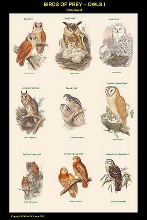 Birds of Prey – Owls – Vertical Classroom Poster I by John Gould
