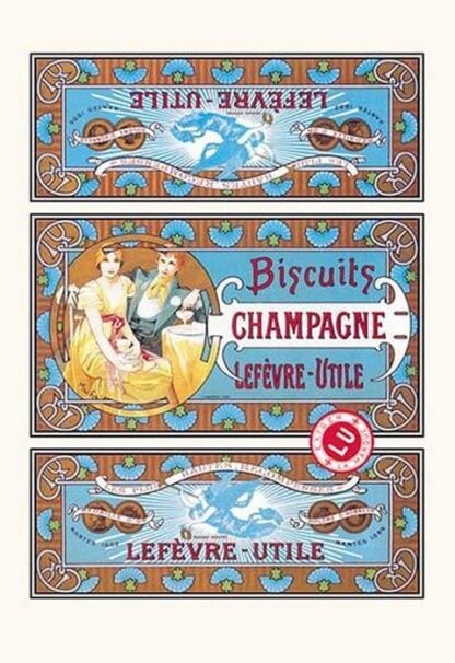 Alphonse Maria Mucha (1860-1939) was a Czech Art Nouveau painter. However, he did a great many posters and prints. The period of his work has become known as the Belle Epoque. Here is the original box design for Champagne Biscuits by the Leferve Utile company.1900/France