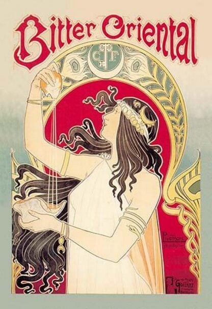 An early advertisement for Absinthe. “Bitter Oriental Absinthe” is a captivating Art Nouveau poster created by Henri Privat-Livemont, a renowned Belgian artist, in the late 19th to early 20th century. This artwork, designed as an advertisement for absinthe, epitomizes the opulence and allure of the Belle Époque period.Henri Privat-Livemont (1861-1936) was an artist born in Schaerbeek, Brussels, Belgium. He is best known for his Art Nouveau posters. From 1883 to 1889, he worked and studied in the studios of Lemaire, Lavastre & Duvignaud. He, with Lemaire, created the decor of the Theatre Francais as well as the Hotel de Ville, Paris. He later moved back to Brussels, and worked on theaters and casinos there.Unknown Date/France
