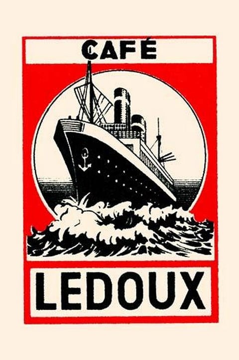 An ocean transport cuts through the waves on this matchbox label for a coffee brand.Unknown Date/Holland