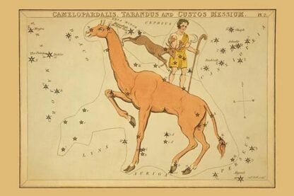 Astronomical chart showing a camel, shepherd, and reindeer forming the constellations. Jehoshaphat Aspin, an American artist active in the 18th and 19th centuries, made significant contributions to both art and literature. One of his notable works is the “Familiar Treatise on Astronomy” (1825), which he authored. This book, published by Samuel Leigh in Britain, explains the general phenomena of celestial bodies through etchings, engravings, and hand coloring. Aspin’s illustrations provide insights into the cosmos, bridging scientific knowledge and artistic expression. Additionally, Aspin delved into children’s literature, geography, and history. His primary work, “Cosmorama: A View of the Costumes and Peculiarities of All Nations”, explored cultural and geographical connections across disparate peoples. This hand-colored engraved book, published by J. Harris in London around 1826, showcased costumes and customs from around the world. Aspin’s multidisciplinary approach left a lasting impact on both scientific and artistic realms.
