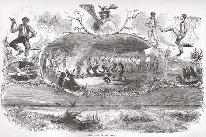 Frank Leslie was a prominent 19th-century American illustrator, publisher, and editor. He started as an illustrator for popular periodicals and established his own publishing company, “Frank Leslie’s Illustrated Newspaper,” which became one of the most successful and influential newspapers of its time. Leslie was also a pioneer in the use of photographs in journalism and established a photographic studio to create original images for his newspaper. He wrote several books and plays and was an important figure in the development of American media, shaping the way news was reported and disseminated. He died in 1880, leaving a lasting legacy.Camp Life in the West1861/USA
