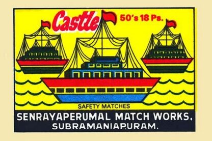 Thousands of companies manufactured matches worldwide and used a variety of fancy labels to make their brand stand out. The match boxes had unusual topics but some were much prettier than others. Showing three very large cruise style ships.Unknown Date/India