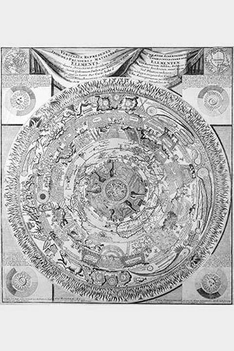Saliba’s map of the cosmos, integrating ancient Pagan and medieval Christian cosmology with Renaissance beliefs and experiences. It presents the universe as a place that is simultaneously ordered and chaotic, spiritual and temporal, familiar and fantastical. Originally published in Italian by Antonio Saliba in 1582, the map was later reissued in Latin by Cornelis de Jode in slightly modified format (lacking one of the nine rings). The De Jode edition shows eight concentric rings, from the inner ring depicting the infernal regions to an encircling ring of fire, populated by demons, phoenixes and salamanders. The fourth ring is a hemispheric map on a north-polar projection, derived from de Jode’s 1593 Hemispheric Ab Aequinoctiali Linea. Within the spandrels are decorative images and text describing solar and lunar eclipses. The diagram is surmounted by a title with flanking hemispheric maps also on a polar projection and adorned with the strap-work embellishments characteristic of late-16th century Dutch engraving. Whitfield’s notes that this cosmological chart, which appears so bizarre and unfamiliar, is in fact only mildly unorthodox as a pre-scientific image of the cosmos. The work’s title promises to display “All things which are in the world and in the heavens, for the universal benefit of all who would know the occult secrets of nature.” It is in the eighth circle [the seventh in the Jollain issue] that Saliba’s unorthodoxy and occultism are given freest rein. The appearance in 1577 of a great comet was, inevitably, interpreted as having prophetic significance. Saliba seems to have regarded this so seriously that the eighth circle is devoted largely to descriptions of comets, their historic appearances and occult significance. The cosmic model of concentric rings was derived from Aristotle and Ptolemy, which in modified forms prevailed until the seventeenth century. The Ptolemaic model comprised nine spheres around the earth: five planets, the sun, the moon, the stars, and the primum mobile. Saliba’s departure from the classical content of the nine spheres while retaining the structure, is entirely typical of the fluid state of Renaissance science.1603/Italy