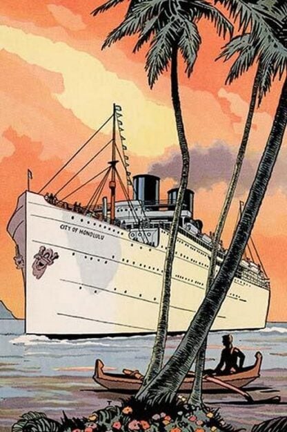 A postcard of the cruise ship ‘City of Honolulu, heading to port in Hawaii.Unknown Date/USA