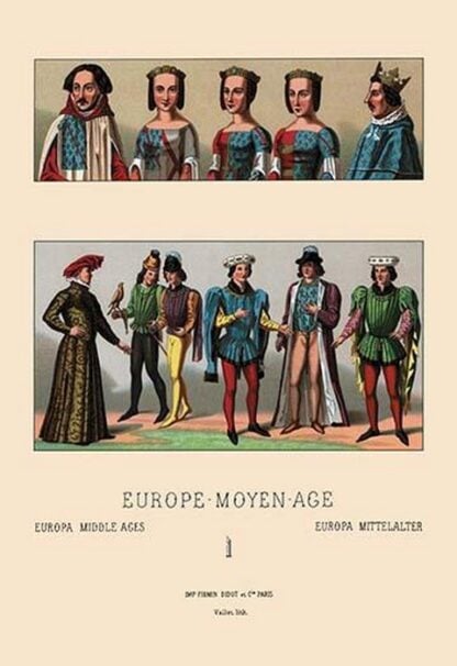 Civil Costumes of the French Nobility, 1364-1461 by Auguste Racinet – Posters and prints on paper or canvas by standard digital or deluxe giclee printing.