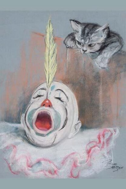 Illustration art of a cat and clown by Peter Driben (American, 1902-1968).Peter Driben was an American pin-up artist, best known for his vibrant and often cheeky illustrations that were a staple of mid-20th century popular culture. Born in 1903 in Boston, Massachusetts, Driben’s work gained prominence during the 1930s and 1940s, a period often considered the golden age of pin-up art.Peter Driben’s pin-up art is characterized by its playful and light-hearted nature. His illustrations often featured glamorous and provocatively posed women, exuding a sense of confidence and allure. Driben had a knack for capturing the beauty and charm of the female form, using bold colors and dynamic compositions. His work was notable for its detailed and realistic rendering, combined with a slightly exaggerated, cartoonish quality that added a sense of fun and fantasy.Driben’s pin-ups were widely published in pin-up magazines such as **”Beauty Parade,” “Titter,” “Wink,” “Rogue,” and “Flirt.” He also created cover art for paperback books and calendars. His work contributed significantly to the visual culture of his time, influencing both contemporary and later artists in the genre. Driben’s pin-ups were part of a broader movement that included other famous pin-up artists like Alberto Vargas, Gil Elvgren, and George Petty. These artists collectively helped to define the aesthetic of the pin-up girl, which became an iconic symbol of mid-century American popular culture, especially during World War II when such imagery was used to boost morale among soldiers.Unknown Date/USA.