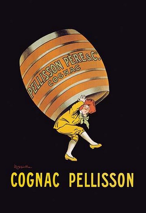 Typical of Cappiello’s advertsing posters, the red haired man carried an oversized barrel of cognac on his back against a very starl black background. Leonetto Cappiello (9. April 1875 in Livorno, Italy-2. February 1942 in Cannes, France) was an Italian poster art designer who lived in Paris. He is now often called ‘the father of modern advertising’ because of his innovation in poster design.1907/France
