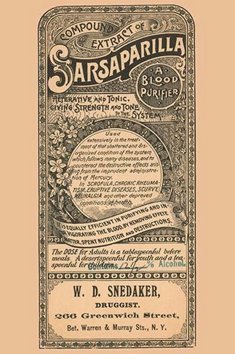 Label from an alcoholic blood purifier, or at the time, it was a medicine and tonic to cure diseases from scurvy to neuraglia.Unknown Date/USA