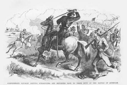 Confederate Cavalry seeks to drive skulkers into Battle at Antietam by Frank Leslie