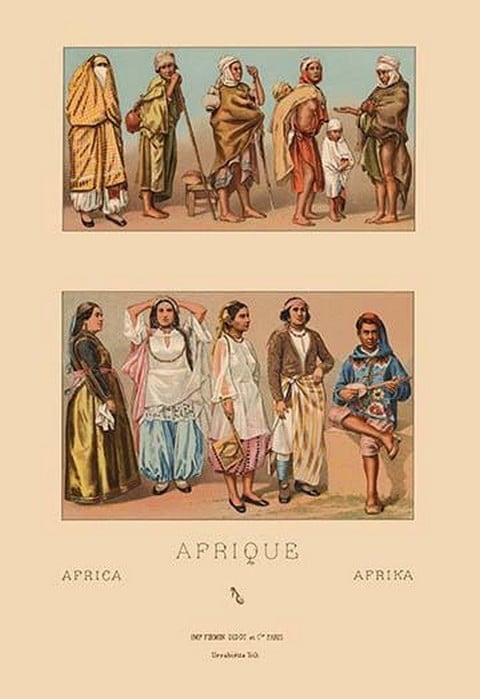 Costumes of Tunisia and Algeria by Auguste Racinet – Posters and prints on paper or canvas by standard digital or deluxe giclee printing.