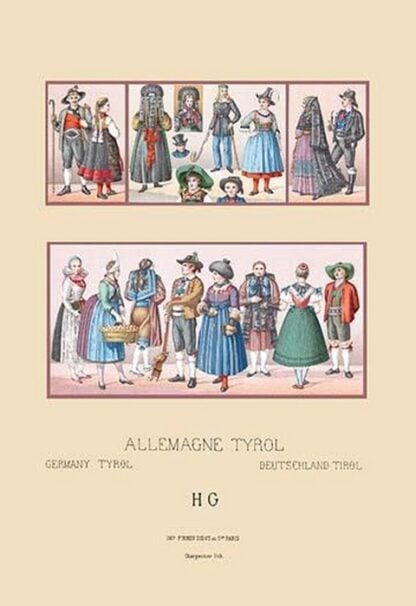 Costumes of Tyrol, Germany by Auguste Racinet – Posters and prints on paper or canvas by standard digital or deluxe giclee printing.
