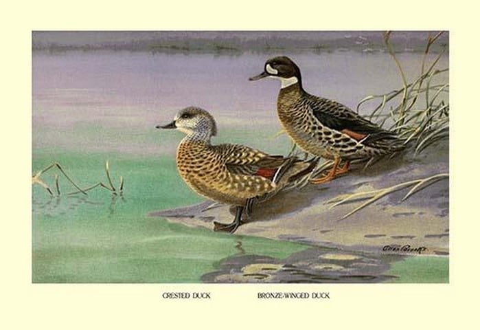 Crested and Bronze-Winged Ducks by Allan Brooks