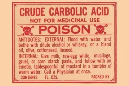 Crude Carbolic Acid – Not For Medicinal Use – Poison – Posters and prints on paper or canvas by standard digital or deluxe giclee printing.