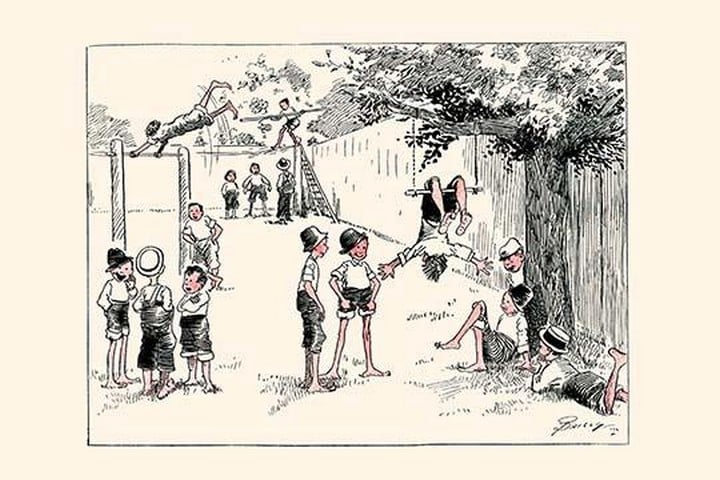 Clare A. Briggs (1875-1930) was an early American comic strip artist who gained prominence in 1904 with his strip A. Piker Clerk. His later comic strips, such as When a Feller Needs a Friend, Ain’t It a Grand and Glorious Feeling?, The Days of Real Sport, and Mr. and Mrs., showcased his talent for capturing small-town Americana. Born in Reedsburg, Wisconsin, Briggs began his newspaper career in Dixon, Illinois, delivering papers while wearing a patriotic cap. His Midwest upbringing provided inspiration for the nostalgic scenes he depicted in his cartoons. While attending the University of Nebraska, he studied drawing and stenography, and his encounter with Lieutenant John J. Pershing steered him toward a career in newspaper art. Briggs worked as an editorial cartoonist during the Spanish-American War and later created A. Piker Clerk, often considered the first daily continuity comic strip. After 17 years in Chicago, he returned to New York, leaving behind a legacy of humor and Americana in his timeless illustrations.