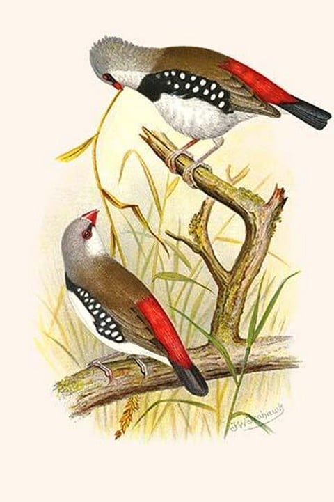 Diamond Sparrow or White Headed Finch by Frederick William Frohawk