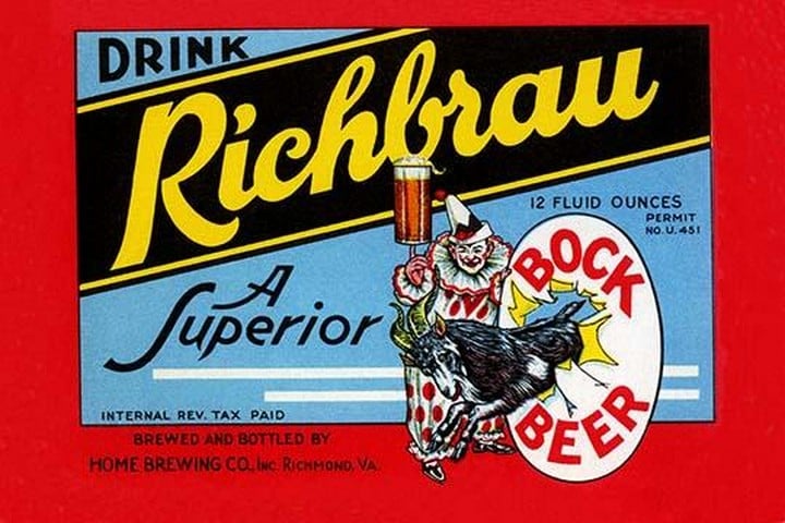 This rich brew promises a superior beer. This label acts as both a bottle label and an advertisement by promoting ‘Drink.’ The clown balancing a full beer glass on his finger as a goat breaks through a paper covered hoop adds to the whimsy of this colorful picture.Unknown Date/USA