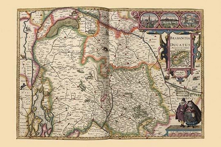 The Duchy of Brabant was a historical region in the Low Countries. Its territory consisted essentially of the three modern-day Belgian provinces of Flemish Brabant, Walloon Brabant and Antwerp, the Brussels-Capital Region and most of the present-day Dutch province of North Brabant. The Flag of Belgium is based on the colors of Brabant’s coat of arms: black, yellow, and red. In Roman times, the territory was situated in the Roman provinces of Belgica and Germania Inferior and inhabited by the Belgae, who were of both Celtic and Germanic origin. At the end of the Roman period they were conquered by the Germanic Franks. The region’s name is first recorded as the Carolingian shire pagus Bracbatensis, located between the rivers Scheldt and Dijle, from bracha ‘new’ and bant ‘region’. It formed the heart of the Low Countries until it was dismembered after the Dutch revolt. Its most important cities were Brussels, Antwerp, Leuven, Breda, ‘s-Hertogenbosch, Lier and Mechelen. Elevation of the towns of Antwerp & Mechelen1622/Netherlands
