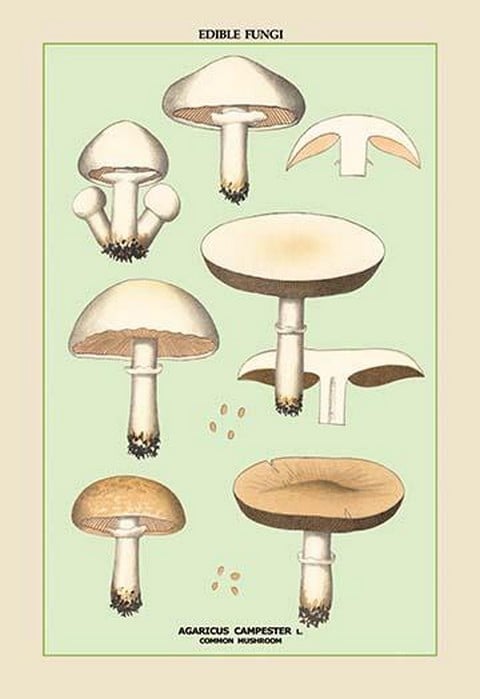 Edible Fungi: Common Mushroom – Posters and prints on paper or canvas by standard digital or deluxe giclee printing.