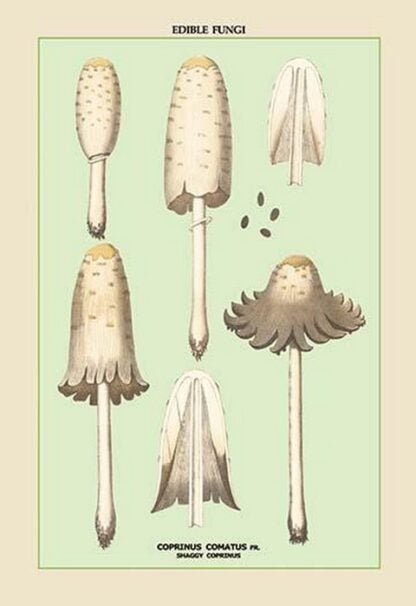 Edible Fungi: Shaggy Coprinus – Posters and prints on paper or canvas by standard digital or deluxe giclee printing.