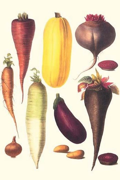 Eggplant, Nuts, and Tubers by Philippe-Victoire Lev que de Vilmorin – Posters and prints on paper or canvas by standard digital or deluxe giclee printing.