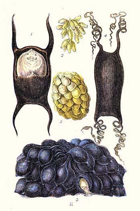 Eggs of Skate, Whelk, Dog Fish by James Sowerby