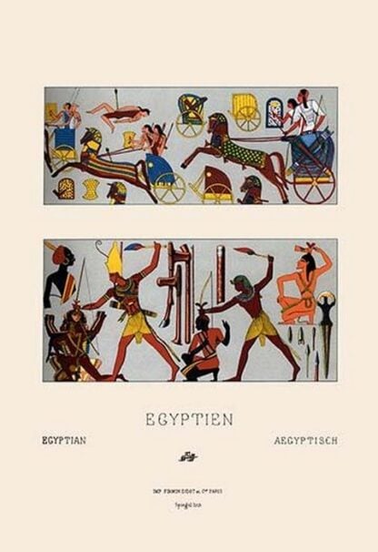 Egyptian Chariots and Weapons by Auguste Racinet – Posters and prints on paper or canvas by standard digital or deluxe giclee printing.