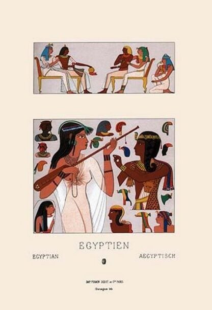 Egyptian Headdresses and Hairstyles by Auguste Racinet – Posters and prints on paper or canvas by standard digital or deluxe giclee printing.