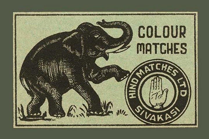 Thousands of companies manufactured matches worldwide and used a variety of fancy labels to make their brand stand out. The match boxes had unusual topics but some were much prettier than others. Features a large bull elephant.Unknown Date/India